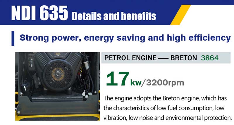 NDI635 оснащен двигателем Breton 3864, обеспечивающим мощность 17 кВт. Этот двигатель не только обладает высокой мощностью, но и обладает отличными энергосберегающими характеристиками, адаптируясь к потребностям длительной работы с большими нагрузками. Кроме того, в конструкции двигателя учтены требования по снижению уровня шума и защите окружающей среды, что обеспечивает пользователям бесшумную и эффективную работу.